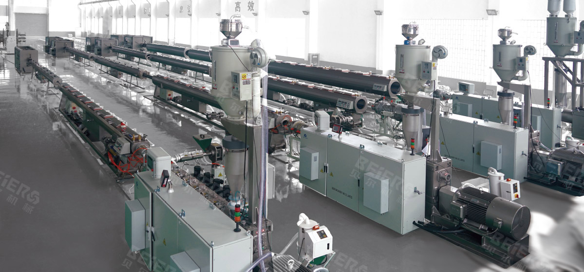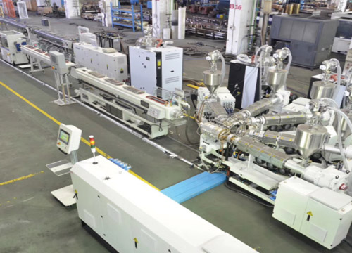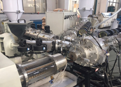 擠出機螺桿采用大長徑比:L/D=38, 雙混煉頭,分離型結(jié)構(gòu), 可使熔融物料在進(jìn)入模頭前100%塑化。