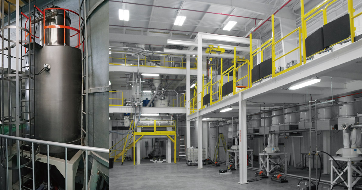 - 顆粒除濕干燥集中處理,原料輸送為密閉式。